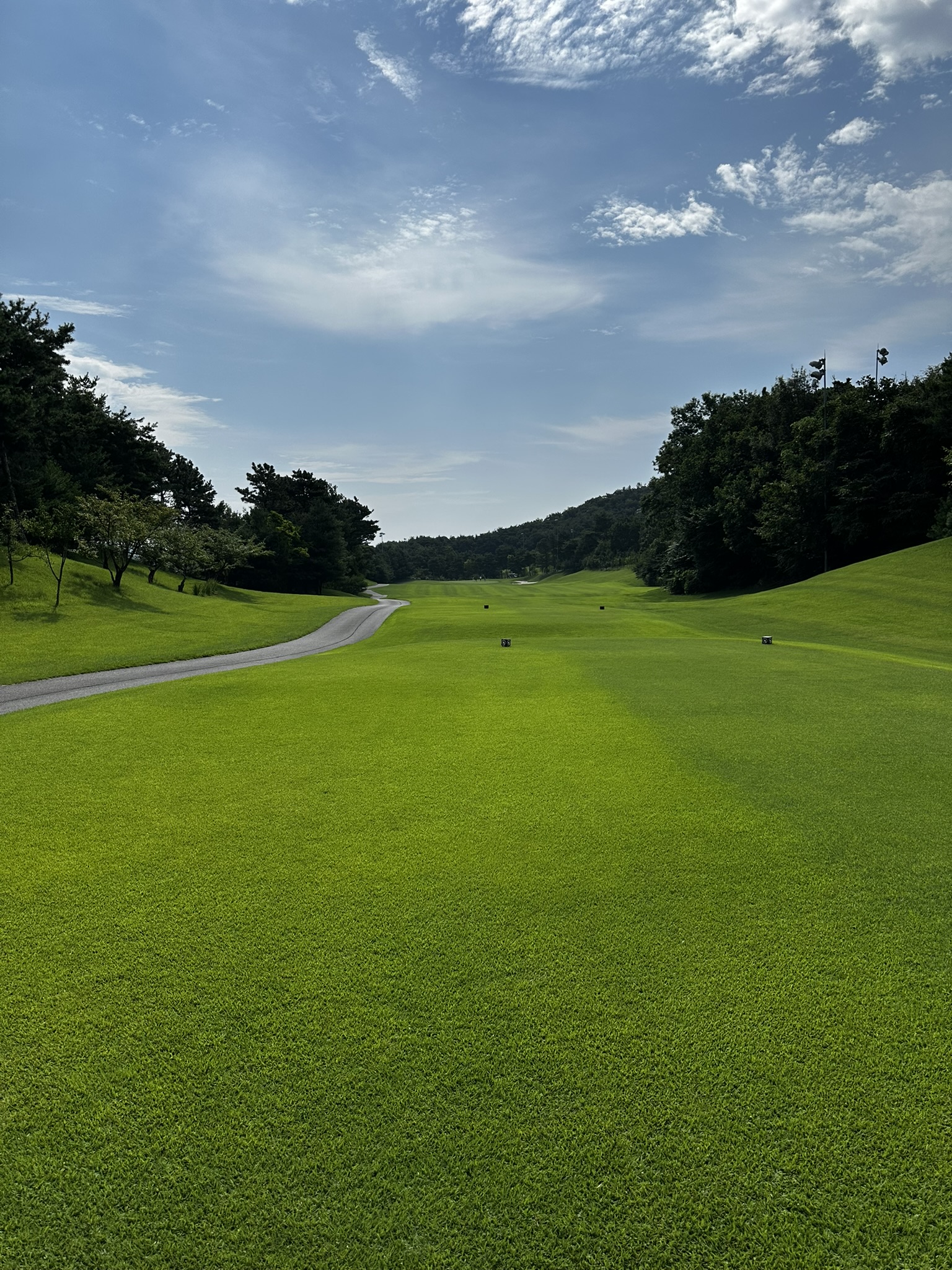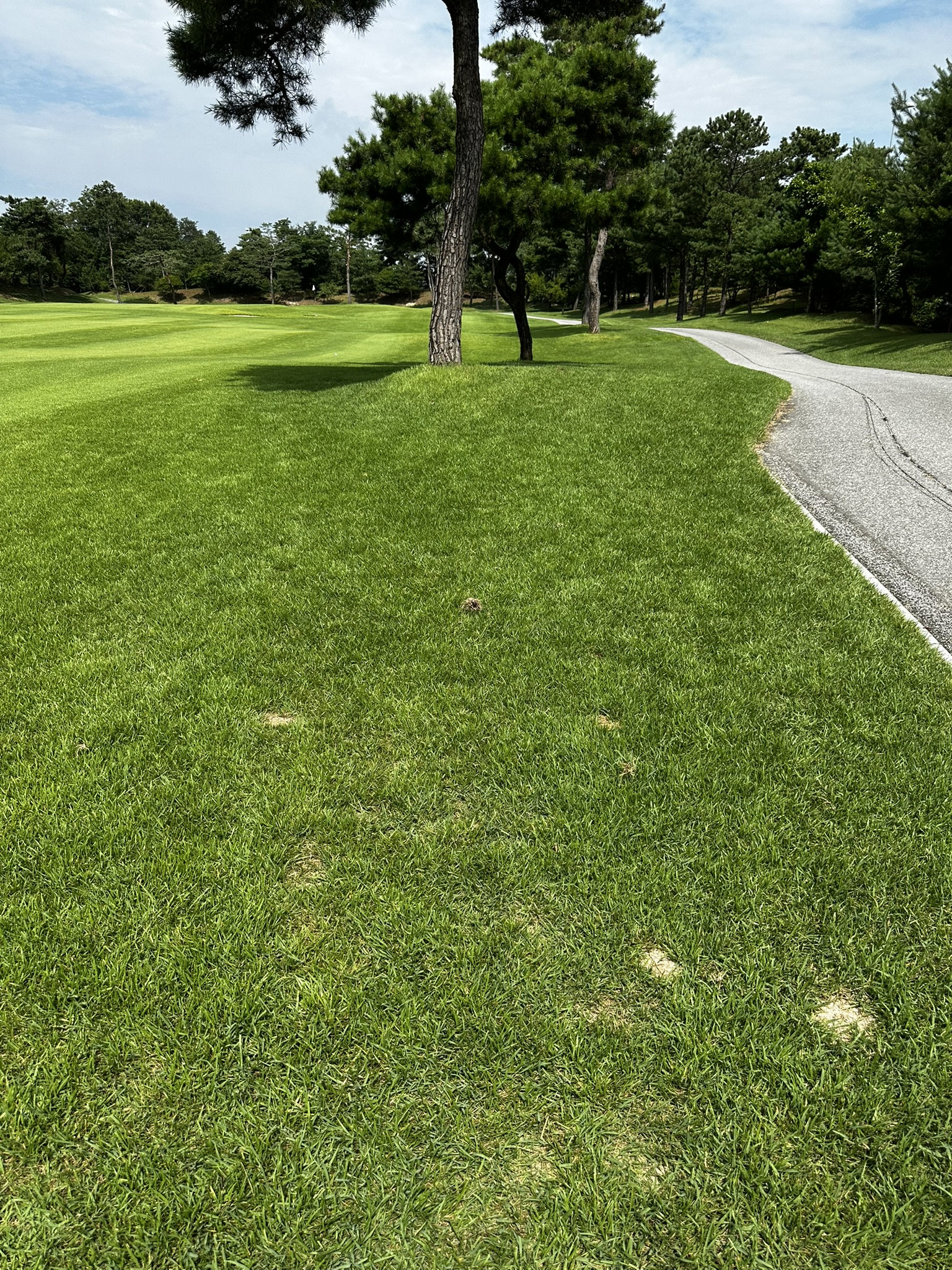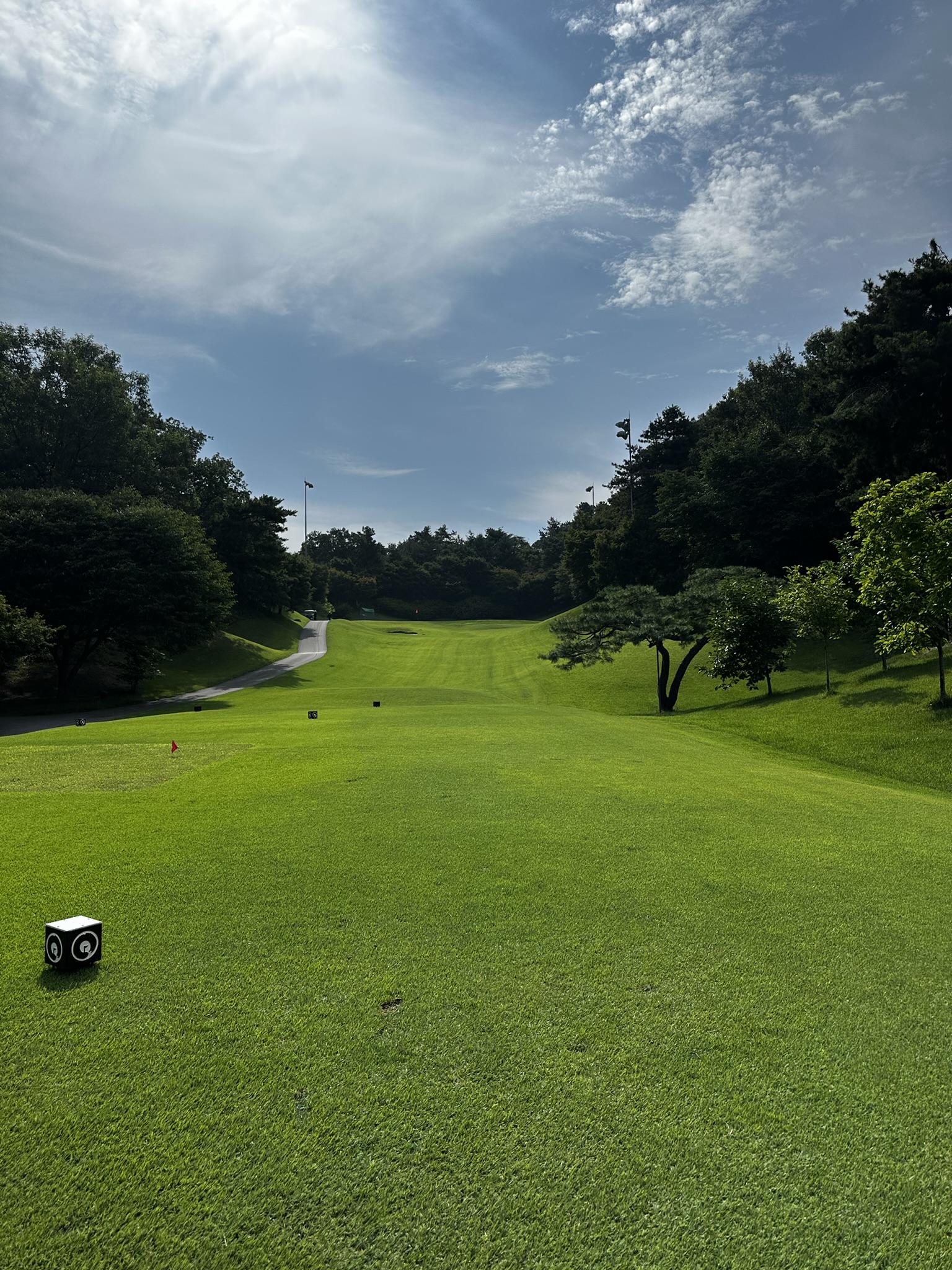 가장 인상 깊었던 점은 전 홀 모두 잔디 위 티샷이 가능했다는 점입니다. 보통 퍼블릭 골프장은 일부 홀에서 매트를 사용하는 경우가 많지만, 아리지CC는 잔디 관리를 철저히 하고 있었습니다. 그린 스피드는 2.5로 느린 편이지만 퍼팅하기엔 무난한 수준이었고, 페어웨이 잔디도 촘촘히 깔려 있어 티샷이 잘 맞으면 공이 예쁘게 떠올라 다음 샷을 편하게 이어갈 수 있었습니다.