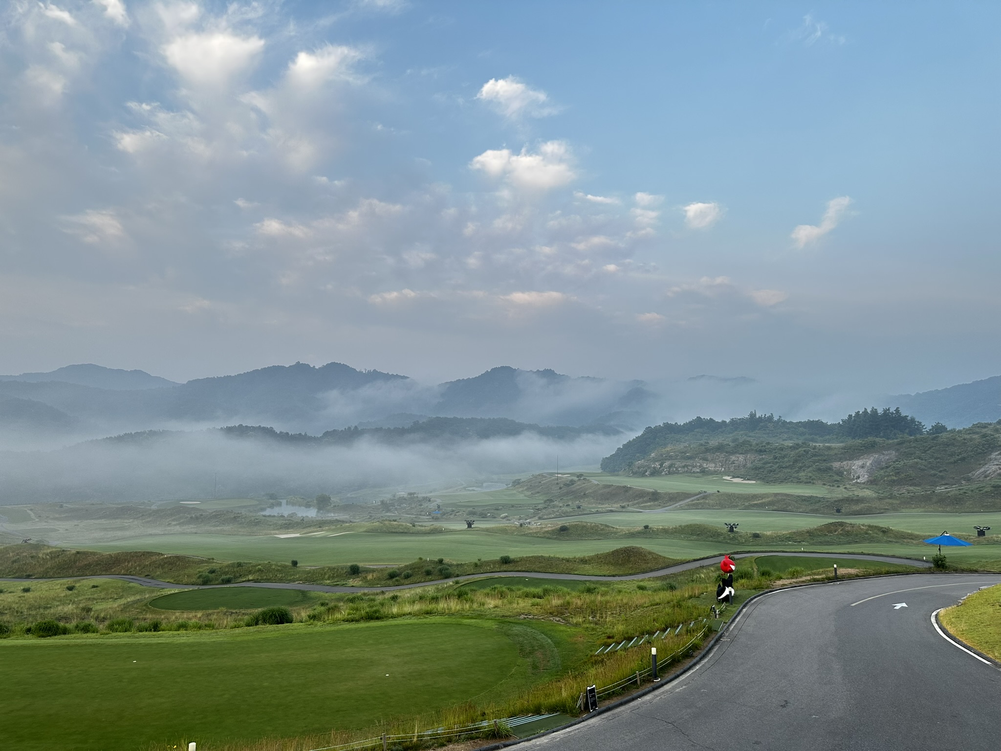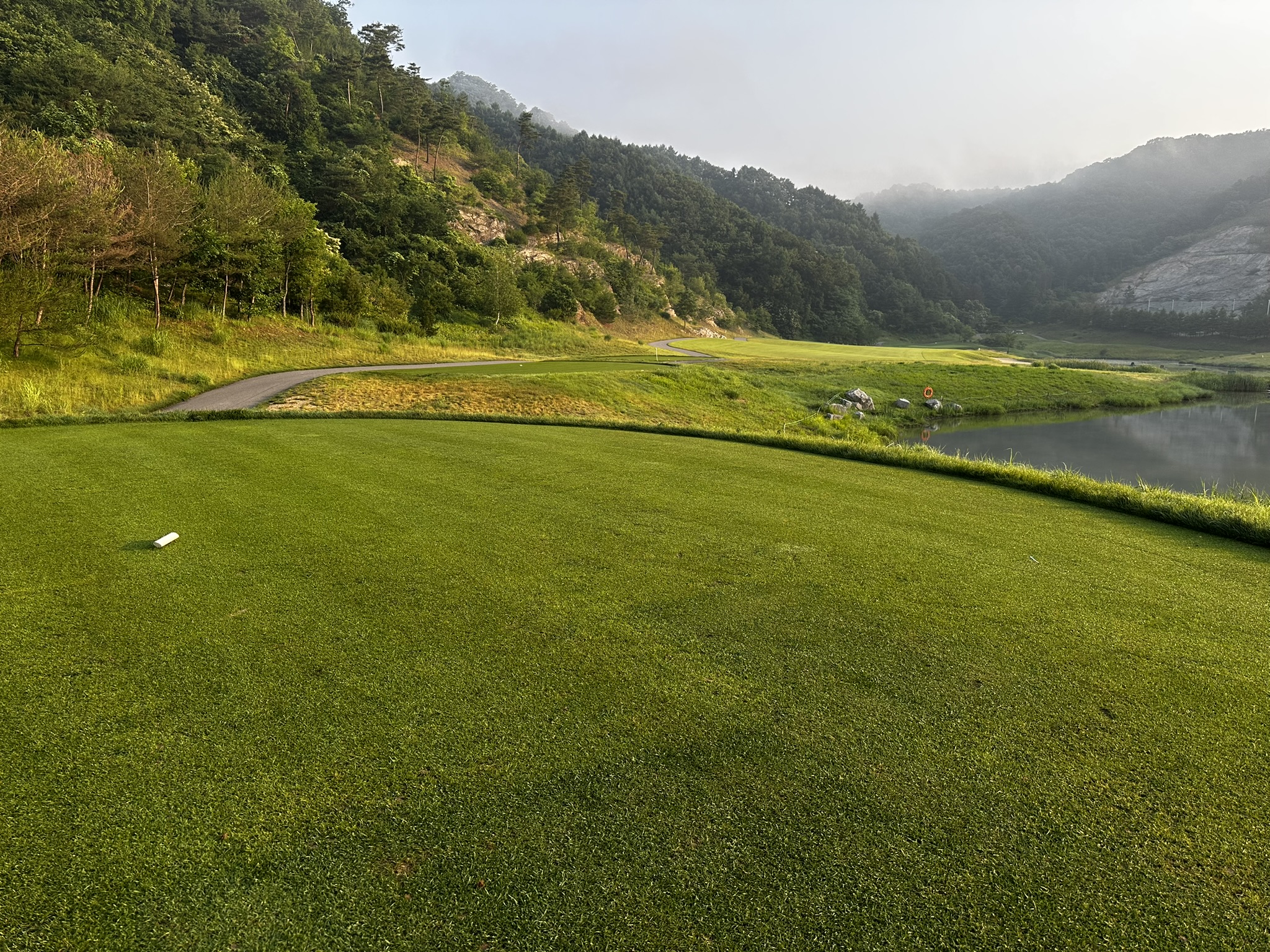 6월 중순은 다소 덥게 느껴질 수 있는 시기지만, 춘천 특유의 선선한 바람 덕분에 전혀 무리 없이 라운딩을 즐길 수 있었습니다. 특히 해가 중천에 떴을 때도 강한 직사광선 없이 쾌적한 기온이 유지되어, 여름 초입 라운딩 장소로는 최적의 조건이었습니다. 벌레도 적고, 습도도 높지 않아 야외 활동에 부담이 없는 점이 인상 깊었습니다.