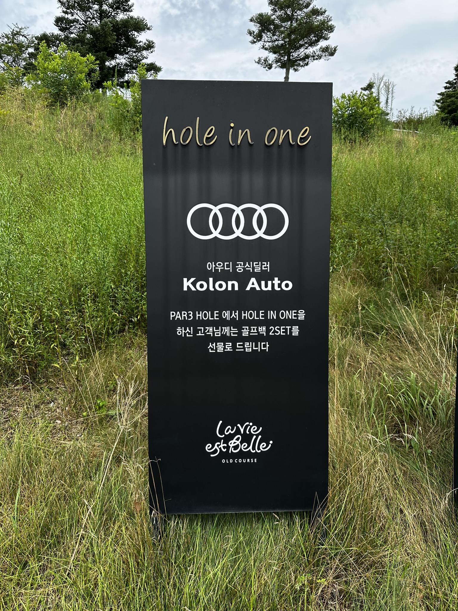 파3에서 홀인원을 기록하시면 아우디 공식 딜러 코오롱오토에서 골프백 2세트를 증정하는 이벤트가 진행되고 있었습니다(방문 시점 기준). 현장 운영은 시기·정책에 따라 변동될 수 있으므로, 예약 전 반드시 공식 안내를 확인하시길 권장드립니다.
