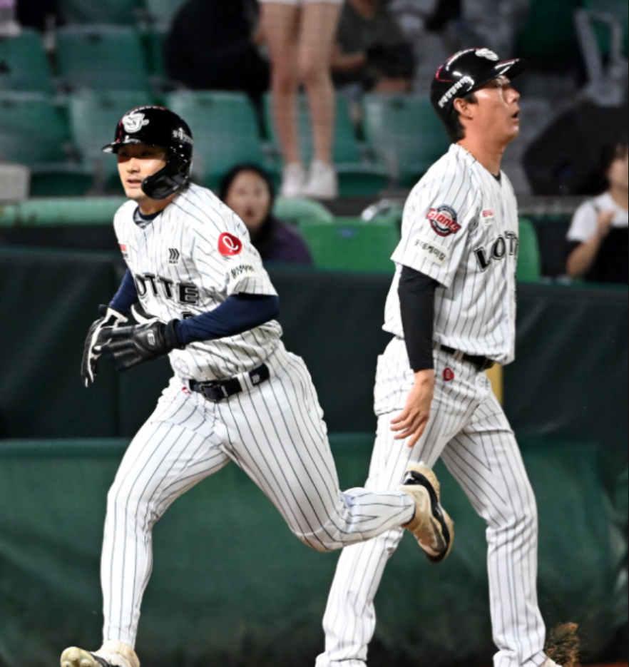 고승민의 우중간 뜬공 때 2루 주자 신윤후가 타구가 잡힌 것을 안타로 착각하고 홈까지 질주했습니다. 주루 코치가 막아섰음에도 이를 무시한 채 달렸고, SSG 야수진의 중계 플레이에 의해 2루에서 아웃 처리되며 순식간에 아웃 카운트 2개를 날렸습니다.