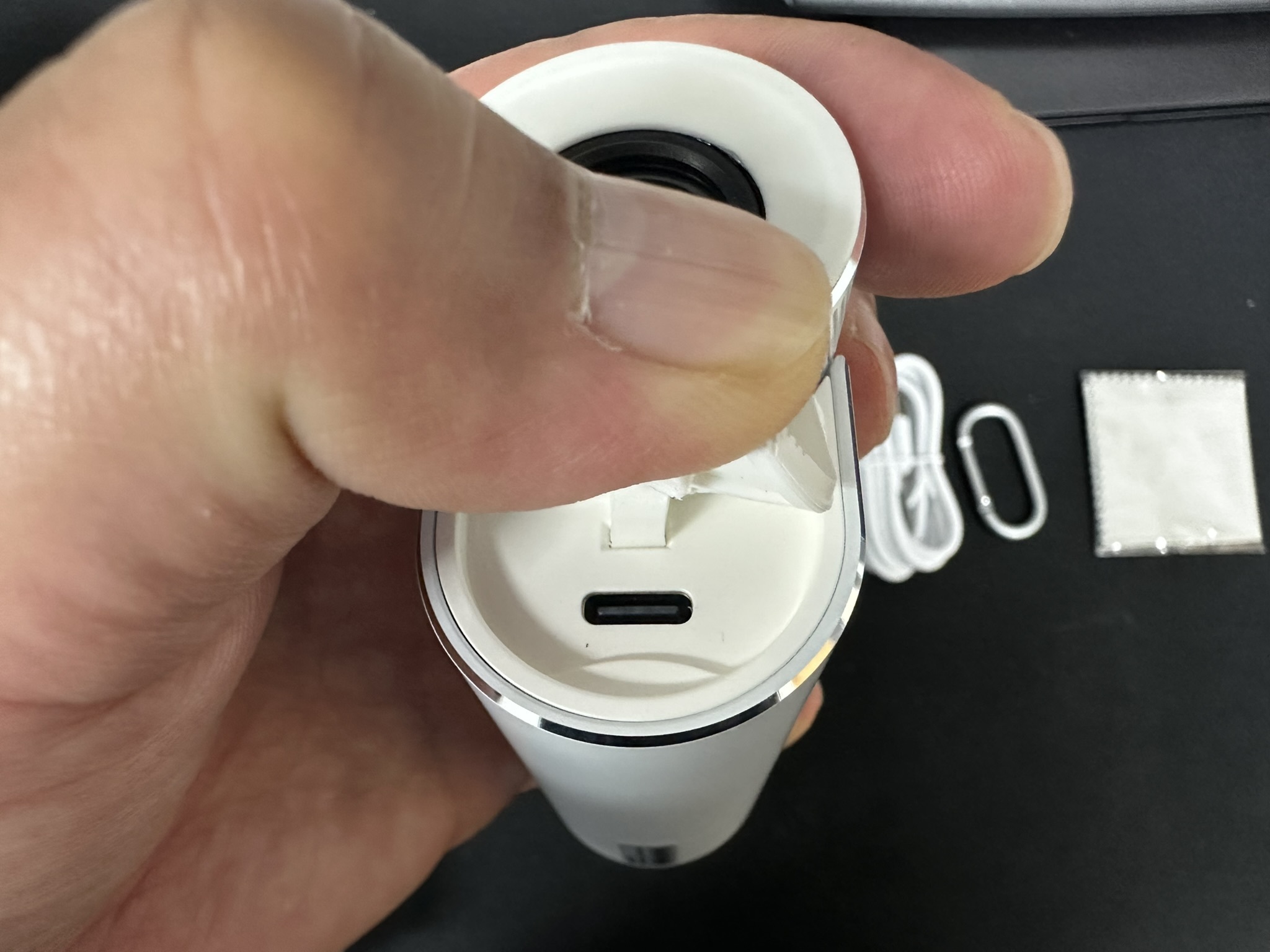 전체 구성품은 측정기 본체, 가죽 케이스, 그리고 충전 케이블 등으로 매우 간결합니다. 특히 마음에 들었던 점은 충전 방식입니다. 이 제품은 C타입 충전을 지원하여 별도의 건전지가 필요 없습니다.