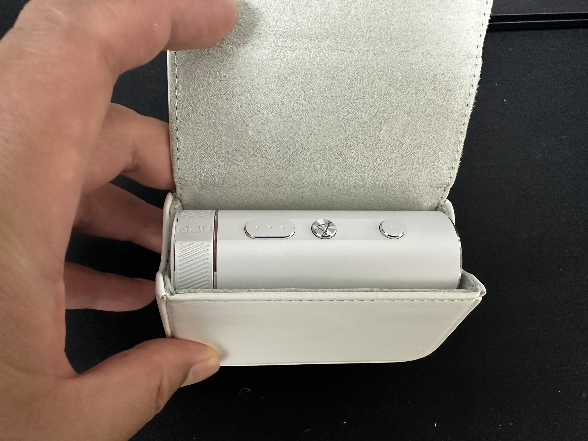하지만 R2G MATE PRO는 화이트 색상의 가죽 케이스를 기본 제공합니다. 네모나고 군더더기 없는 디자인 덕분에 별도의 케이스를 구매할 필요가 전혀 없어서 돈이 절약된다는 느낌을 받았습니다. 케이스 자체가 너무 고급스러워서 처음부터 기분이 좋았습니다.