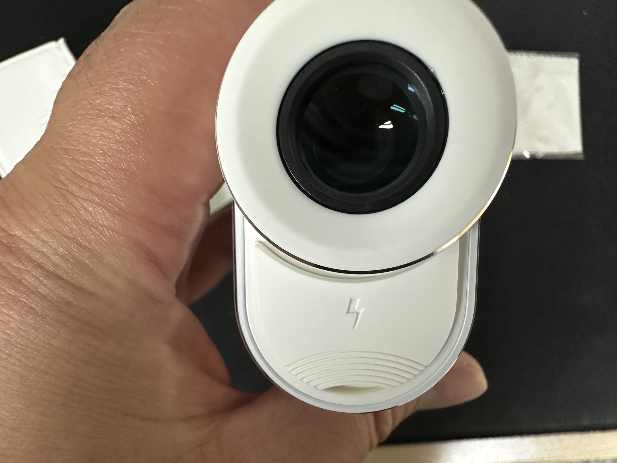 하지만 R2G MATE PRO는 한 손에 쏙 들어오는 최적의 사이즈를 자랑합니다. 측정기를 잡고 조작할 때 안정적인 그립감을 제공하며, 라운딩 중 한 손으로 쉽고 빠르게 거리를 측정하기에 완벽해 보였습니다. 디자인뿐만 아니라 사용자 편의성까지 고려한 설계라는 인상을 받았습니다.