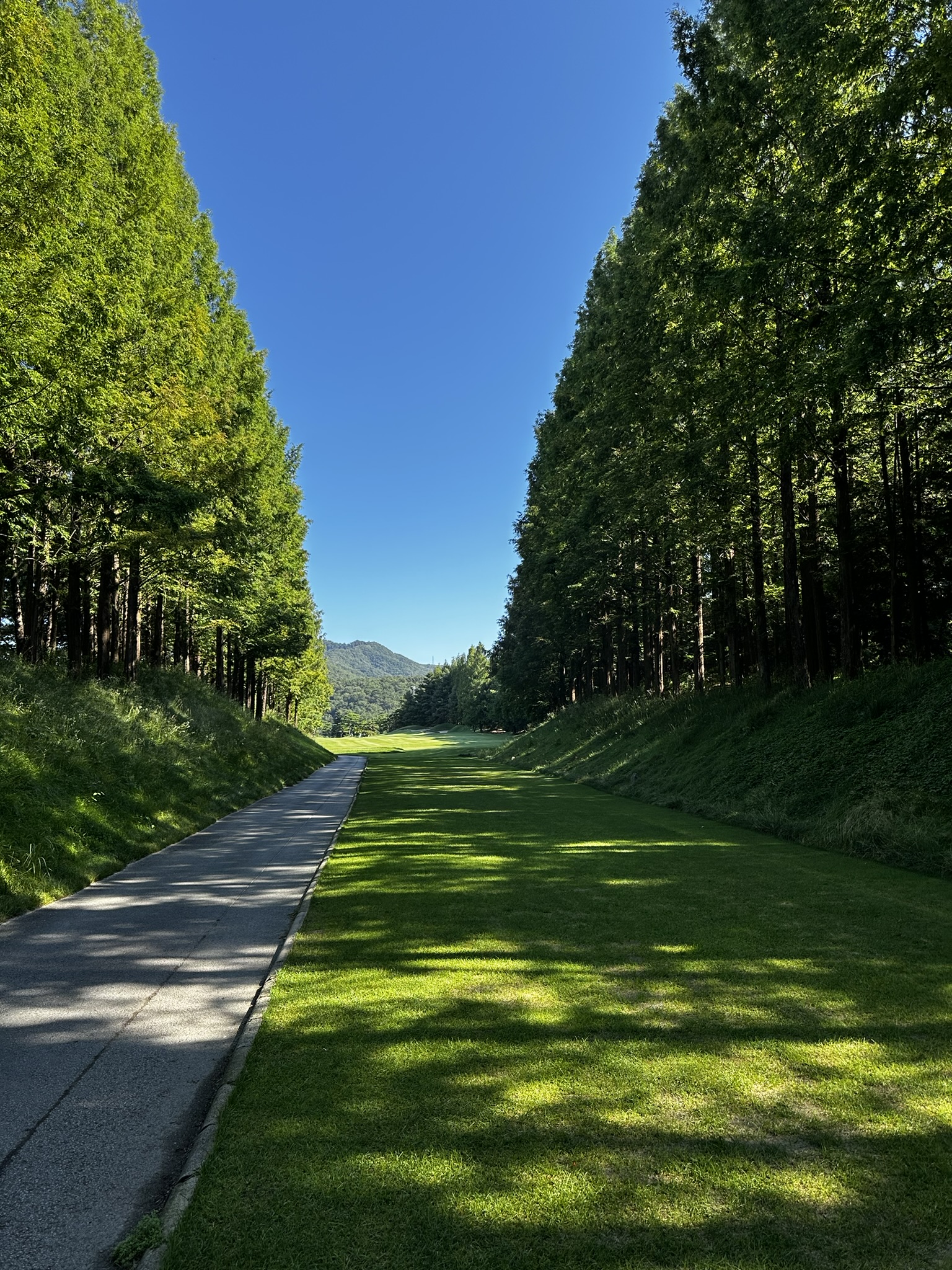 블루헤런 하면 빠질 수 없는 것이 바로 시그니처홀인 메타세콰이어홀입니다. 높은 수목이 줄지어 있는 장관은 마치 유럽의 어느 골프장에 와 있는 듯한 착각을 불러일으킬 정도였습니다. 플레이 난이도는 물론이거니와 풍경에서 주는 감동까지, 이 홀 하나만으로도 방문 가치가 충분하다고 느꼈습니다.