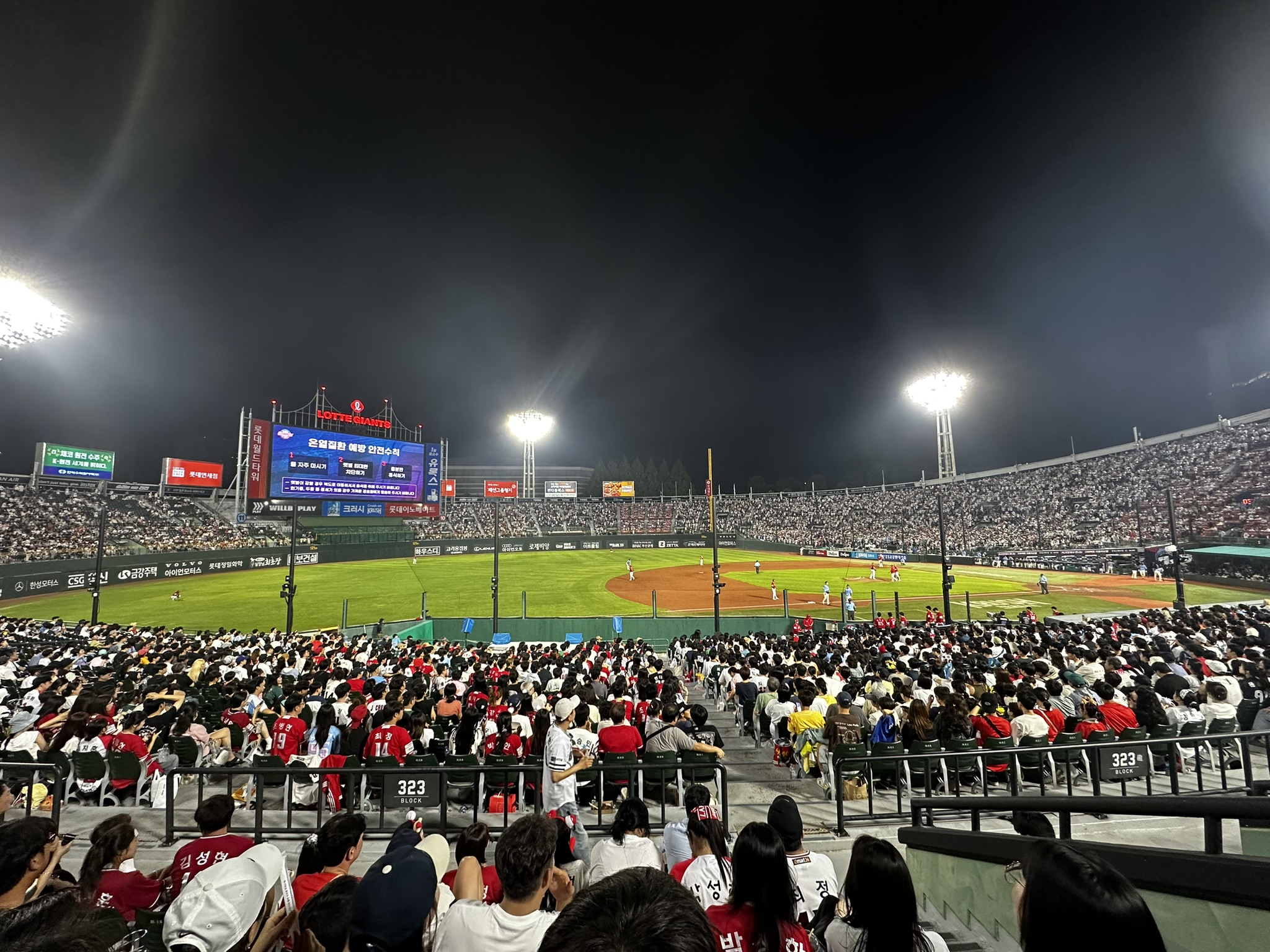 그리고 인상 깊었던 것은 바로 LED 조명 효과였습니다. 경기 중간중간 LED 라이트를 활용해 관중의 흥을 돋우는 분위기를 연출하더군요. 전체 조명을 껐다가 핸드폰 플래시로 응원하는 모습, 조명이 깜빡이면서 분위기를 이끄는 모습은 잠실에서는 느껴보지 못한 특별한 경험이었습니다.