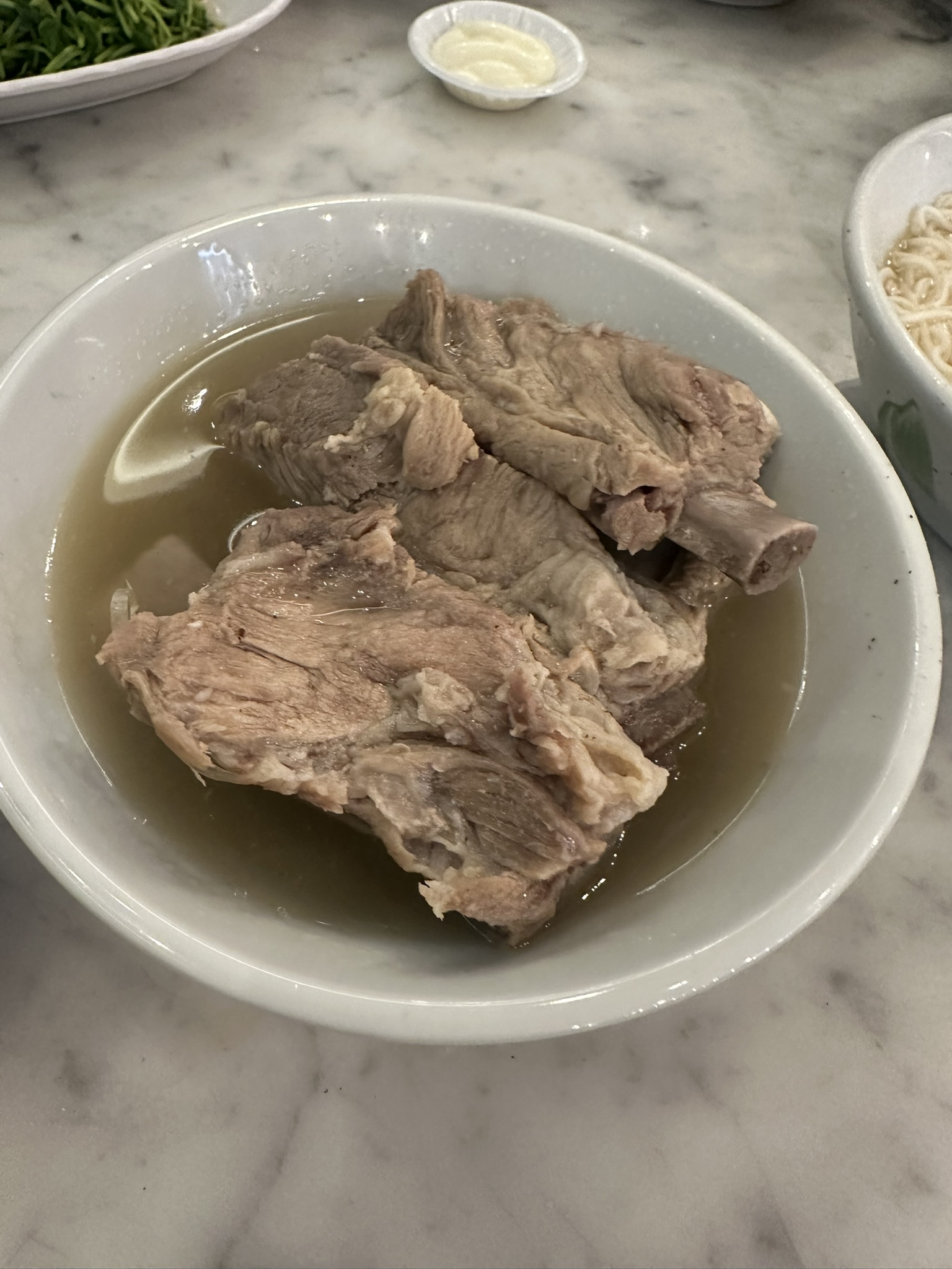 돼지갈비탕 스타일의 진한 국물 요리로, 아이들이 1등으로 꼽은 음식이었습니다. 마늘 추가는 꼭 하시길 추천드립니다.
