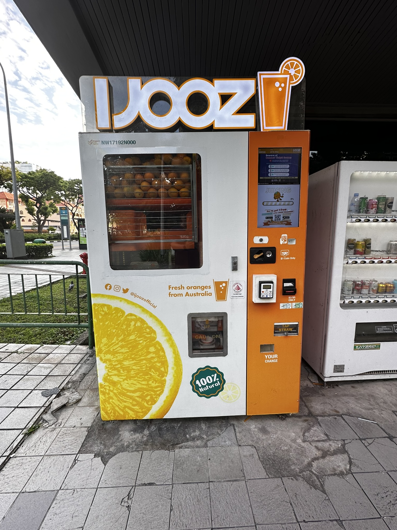 싱가포르 곳곳에서 쉽게 볼 수 있는 자판기로, 즉석에서 착즙된 오렌지 주스를 마실 수 있어 아이들에게 인기였습니다.