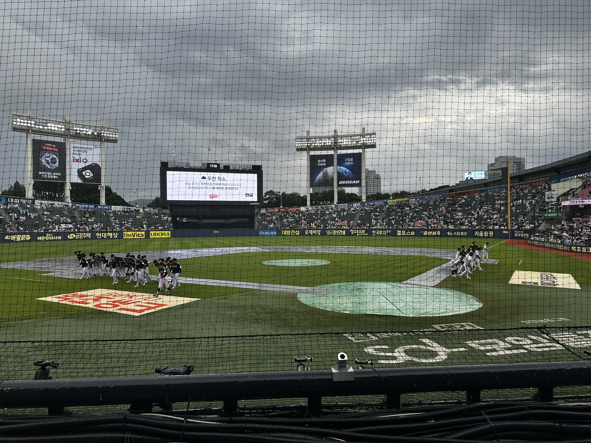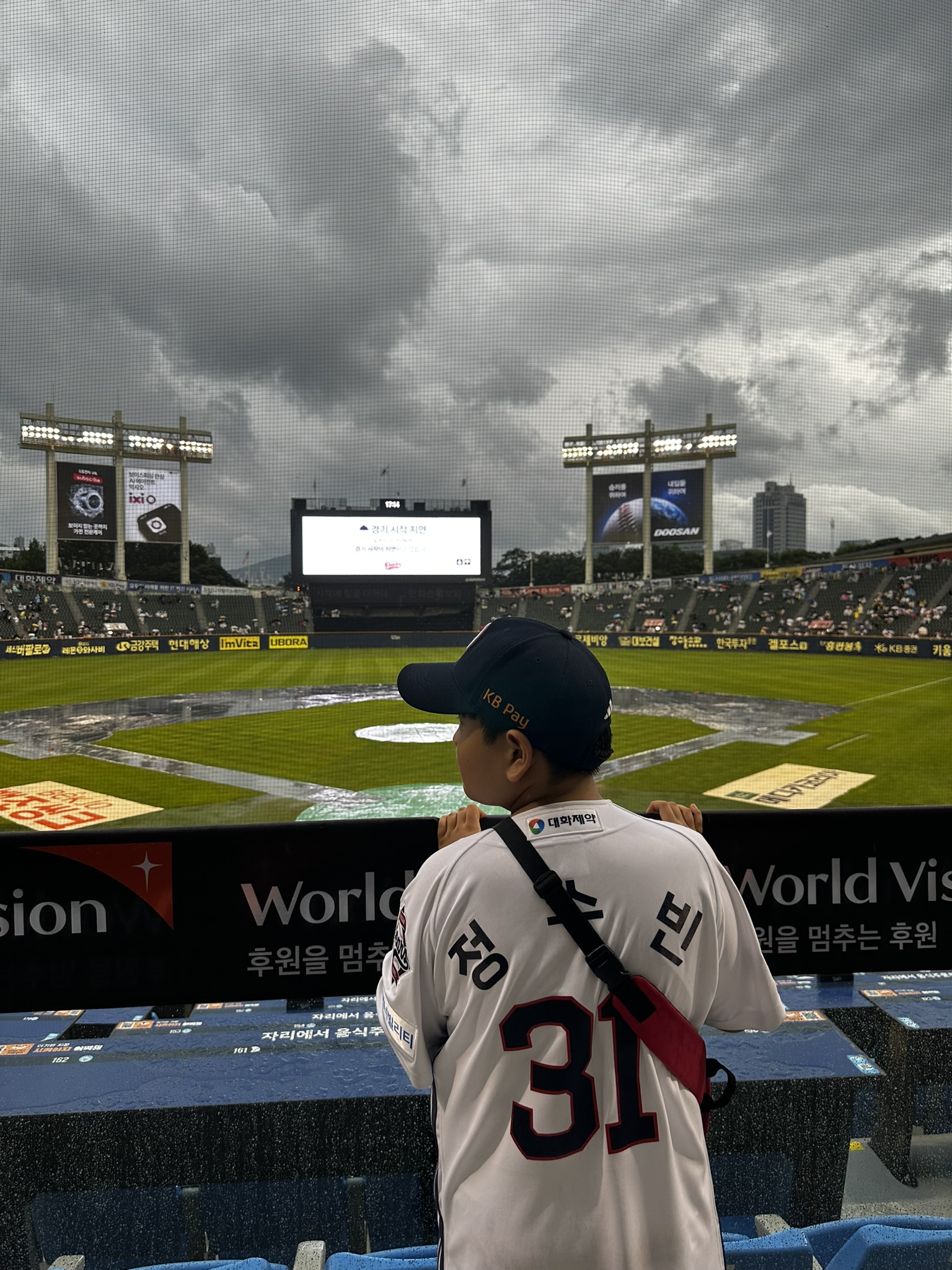 어제는 시작부터 뭔가 심상치 않았습니다. 하루 종일 오락가락하는 얄궂은 날씨 탓에 불안했지만, 다행히 경기 시작 전에는 비가 잦아들어 큰 기대를 안고 온 가족이 야구장으로 향했죠.