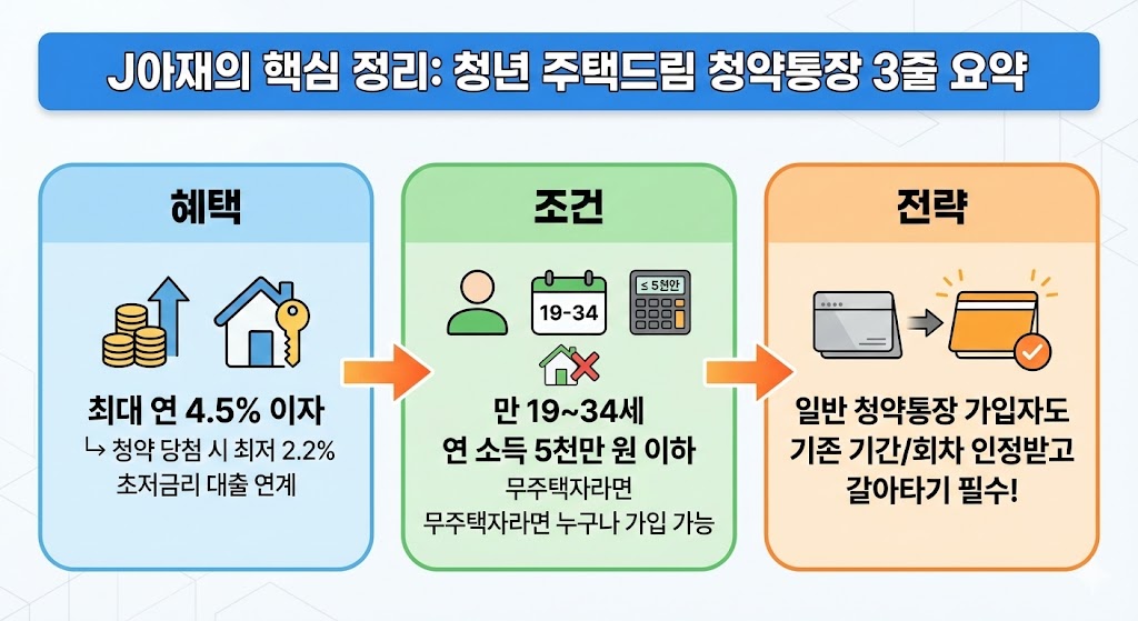내 집 마련의 꿈을 현실로 당겨줄 이 통장의 정체와 가입 조건, 그리고 왜 무조건 갈아타야 하는지 J아재가 명쾌하게 정리해 드리겠습니다.