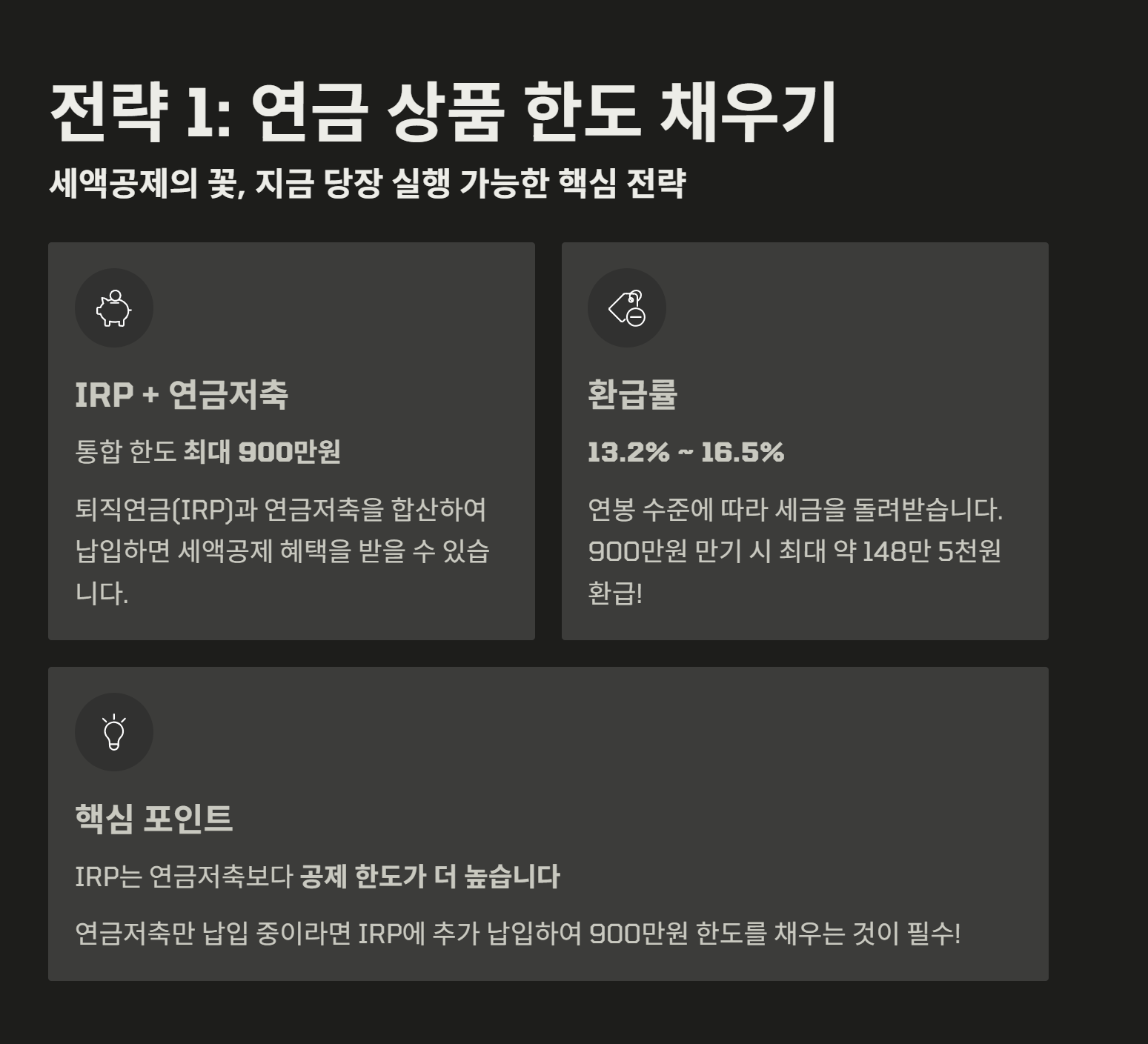 1. 세액공제 막판 전략: 연금 상품 한도 채우기